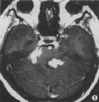 一般认为平扫对脑结核瘤诊断价值不大。本组病例中,成熟期干酪液化结核瘤,在平扫时即可见到厚壁环状结核瘤壁,环内可见长T1、长T2混杂信号影。本组19例50个结核瘤有此种表现(占72%),故认为MR平扫对本病的定性诊断具有一定的意义。静脉注射Gd-DTPA后可以发现更多其他类型的结核瘤。